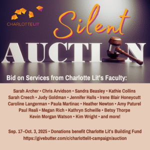 The Charlotte Center for Literary Arts (better known as Charlotte Lit) is an incredible resource for the North Carolina writing community–and I’m happy to share that I’m joining their faculty for the upcoming programming year! I’d love to see you at any of the following events. Financial assistance is available for classes.
